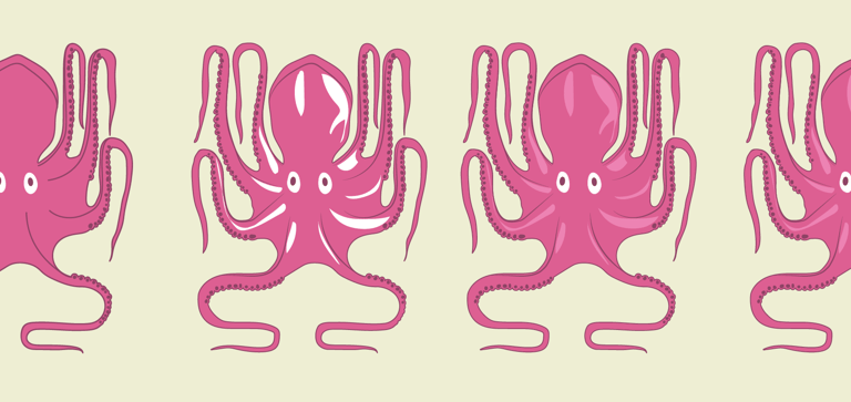 Une fois une palette de couleurs définit, j'ai réalisé le dessins de la pieuvre, ainsi que l'ajout de lumière et reflets sur ce dernier.