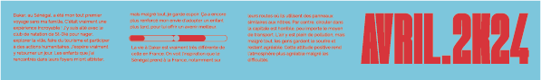 Suite à mon voyage sportif et humanitaire au Sénégal en Avril 2024 avec le club de natation de Saint-Dié-des-Vosges, j'ai réalisé un poster en tant que souvenir de mon aventure à Dakar.