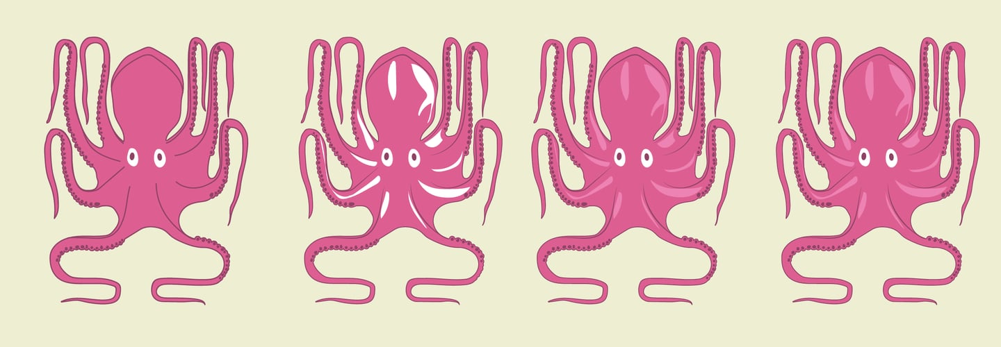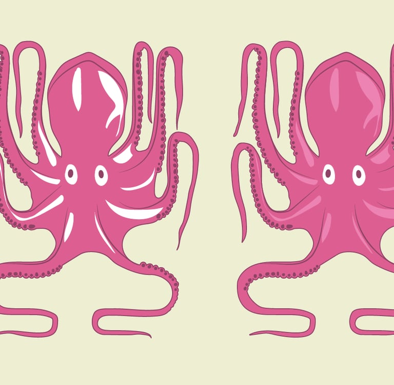 Une fois une palette de couleurs définit, j'ai réalisé le dessins de la pieuvre, ainsi que l'ajout de lumière et reflet sur ce dernier.