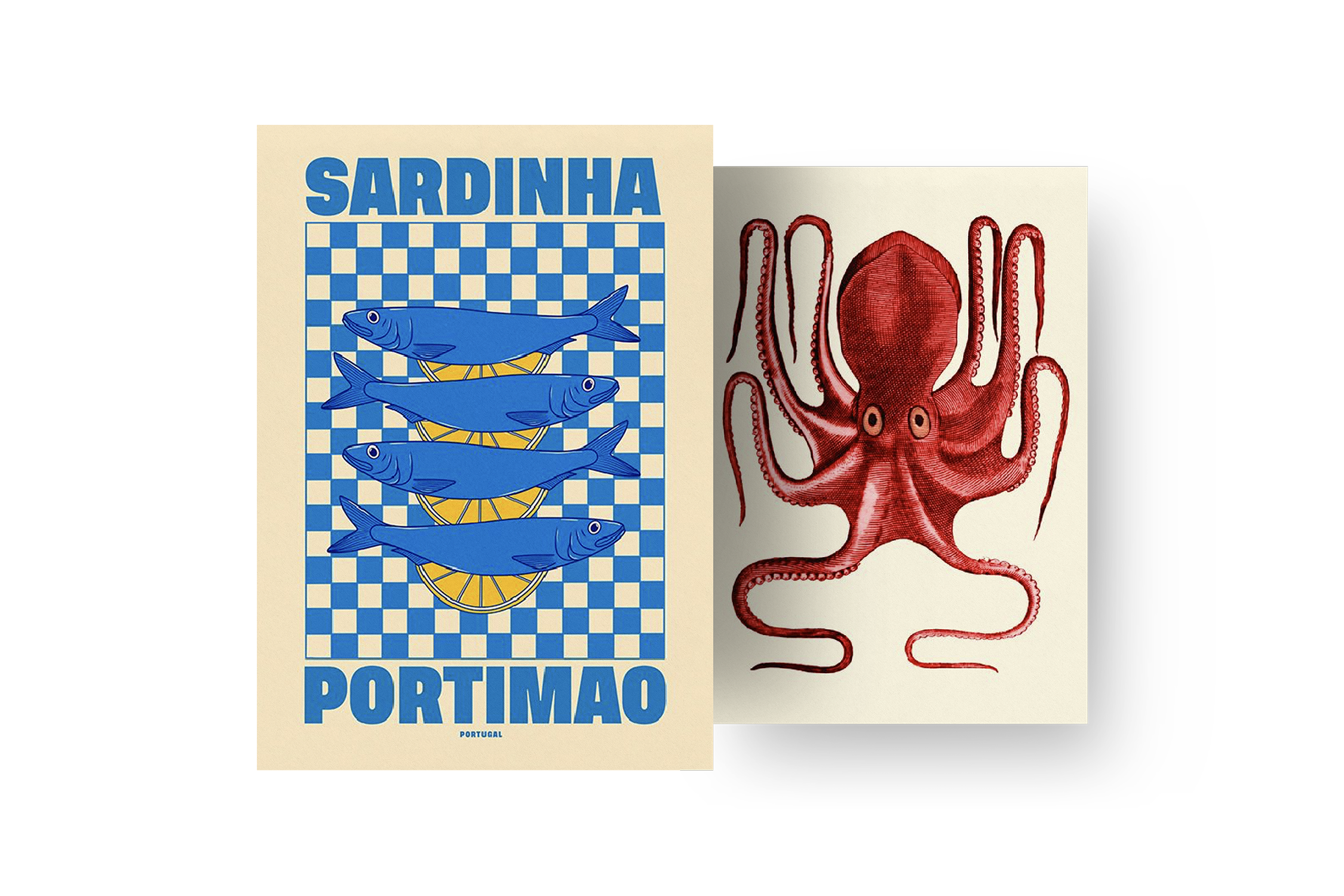 Le premier rendu ne me satisfaisait pas, j’ai ajusté le fond à damier ainsi que les titrages, en optant pour un bleu plus proche de celui de l’affiche des sardines.